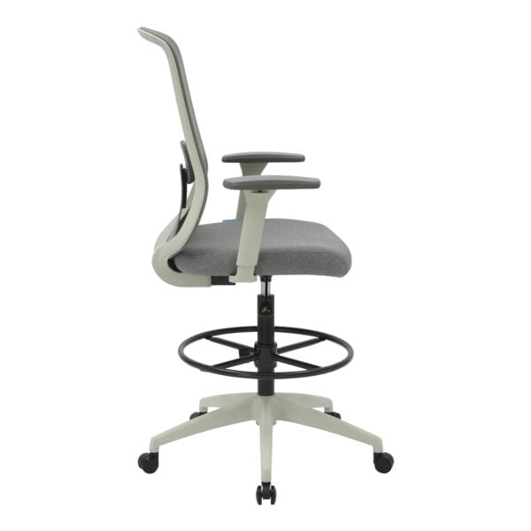 Drafting chair with synchro mechanism available in black or light grey with optional arms.