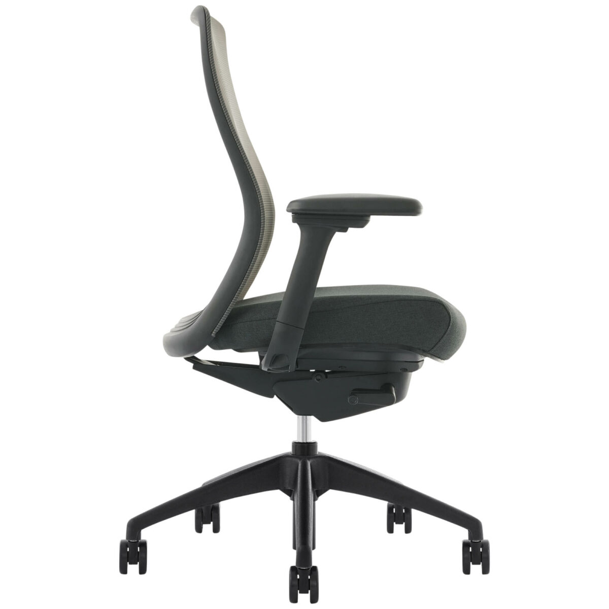 Mesh office chair with synchro mechanism available in light grey or black.