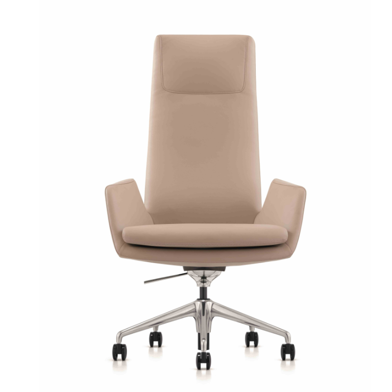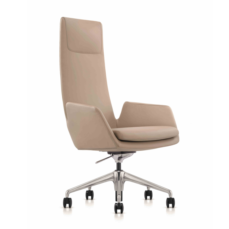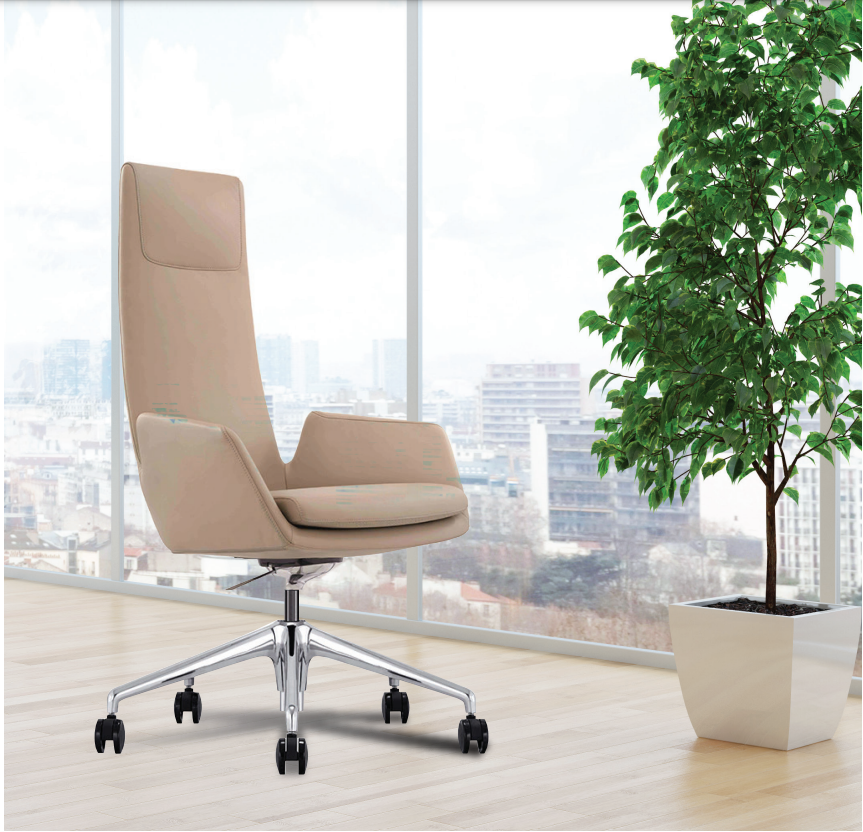 Beige leather executive chair with chrome base.