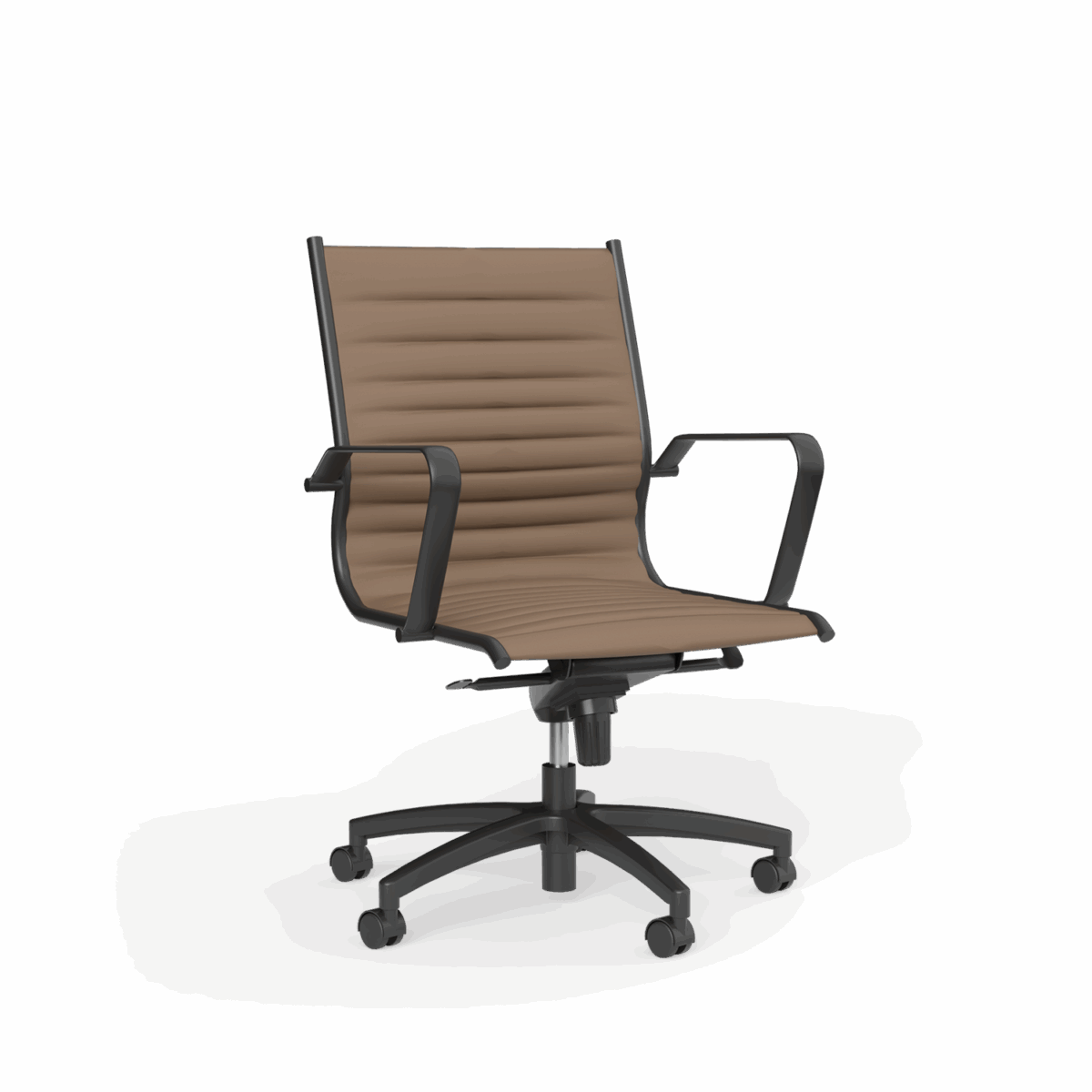 Boardroom chair with black or camel upholstery and chrome or black frame.