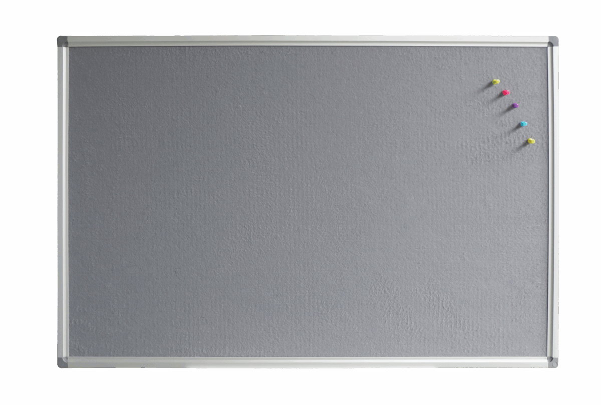 Pinnable felt board with a galvanised steel backing and a low-density fibreboard core available in grey or blue.